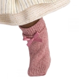 Rochiță combinată, cardigan „pufoșel” și șosete cu fundițe din textile plăcute asigură joacă confortabilă și un aspect stilat.