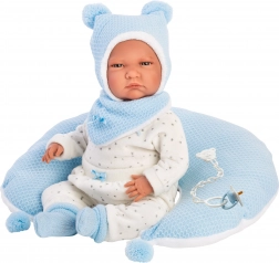 Setul este fabricat în Spania și vine într-o plasă decorativă cu umeraș de carton, iar perna este așezată într-un ambalaj de protecție – ideal de oferit cadou. Datorită croielii precise, se potrivește păpușilor LLORENS de 40–42 cm și ușurează schimbările dese în joaca de zi cu zi.