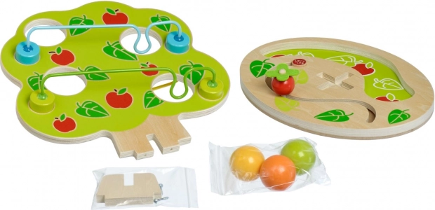 Datorită construcției robuste din lemn și dimensiunilor sigure ale bilelor, jocul este ușor chiar și pentru cei mai mici. Susține dezvoltarea motricității fine, coordonării mână–ochi, logicii și răbdării. Bilele mătăsos de netede se țin excelent în mânuțe și motivează în mod natural la joacă repetată.