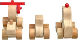 Camionul, mașinuța și elicopterul pot fi folosite separat sau combinate într-o singură garnitură. Copiii își antrenează imaginația și logica atunci când încarcă și transportă.
