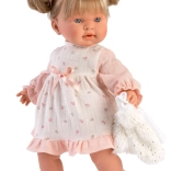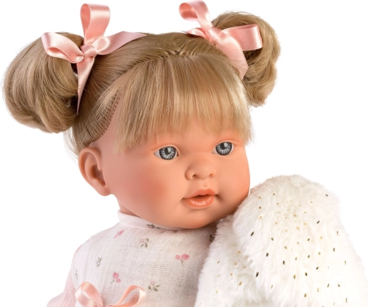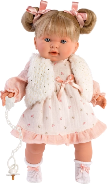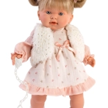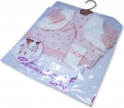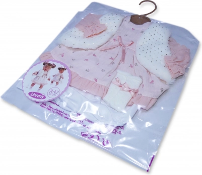 Ținută stilată în 4 piese pentru păpușă de 42 cm de la marca LLORENS încântă cu rochița roz delicată, vestița pufoasă și chiloței, împreună cu un umeraș. Fabricat în Spania, ideal atât pentru joaca de zi cu zi, cât și pentru momente festive. Potrivit de la 3 ani.