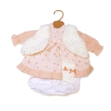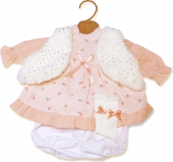 - Ținută completă pentru păpușă de 42 cm: rochie, vestiță și chiloței