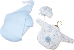 Set stilat pentru păpuși de 35–36 cm, include un compleu din 2 piese și un hamac textil suspendat pentru odihna confortabilă a păpușii. Producție spaniolă de calitate, materiale textile moi și detalii drăgălașe în tonuri alb‑albastre care vor încânta orice mică mămică. Potrivit de la 3 ani.