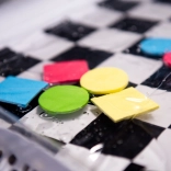 Covorașul are un model de tablă alb-negru care atrage în mod natural atenția copiilor și ajută la stimularea percepției vizuale.