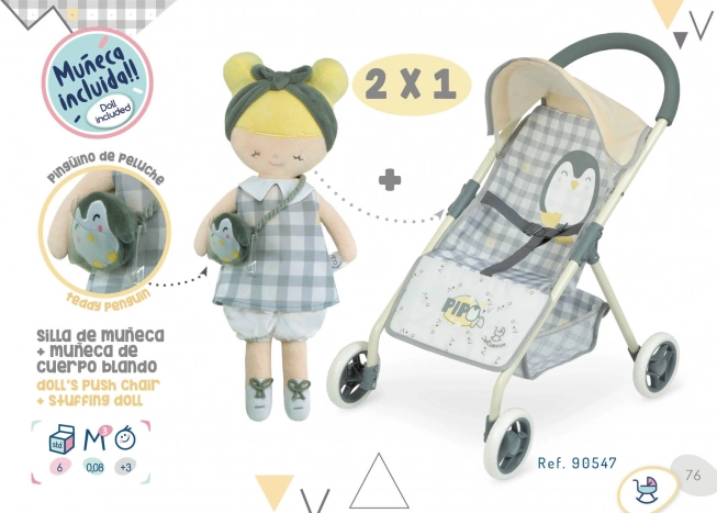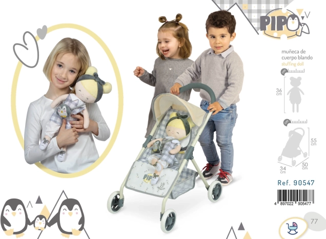 DeCuevas Cărucior sport pentru păpuși cu păpușă de pluș PIPO 2022 este parte din noua colecție pentru anul 2022, care aduce accesorii de calitate și stil pentru viitoarele gospodine. Acest cărucior se caracterizează prin designul său elegant spaniol și execuția precisă. Se manevrează ușor, ceea ce veți aprecia atât în timpul jocului, cât și la depozitare.