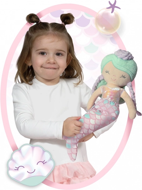 Descoperiți lumea magică cu păpușa de pluș Ocean Fantasy, care datorită învelișului textil detașabil se transformă dintr-o mică sirenă într-o fetiță. Păpușa este fabricată din pluș lucios de înaltă calitate și se potrivește perfect în brațe datorită dimensiunii sale de 36 cm.