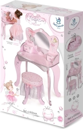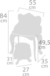Această măsuță de toaletă din lemn este inspirată din basme și este un accesoriu ideal pentru fiecare cameră de fetiță. Este decorată cu imprimeuri superbe și include