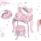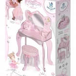 Această măsuță de toaletă magică pentru copii Magic Maria, în variantă roz cu elemente decorative, oferă un loc de joacă fermecat pentru micile cochete pentru a se juca și a depozita obiecte mici.