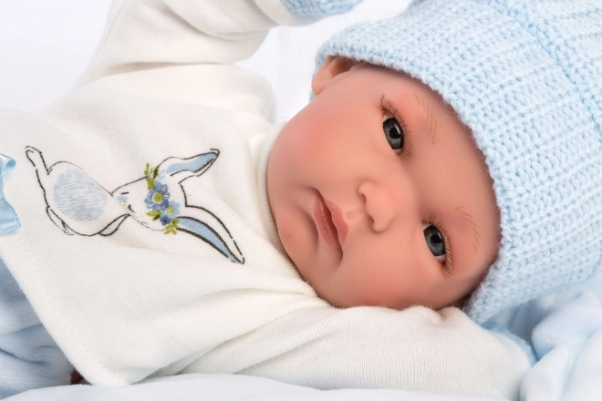 Hăinuțe pentru păpușă din colecția New Born este ideală pentru păpușile de mărime 35-36 cm. Acest set drăguț de haine include 3 piese și o pernuță, care poate fi folosită ca suport. Este fabricat în Spania și ambalajul include o folie de plastic cu umeraș din plastic sau carton. Potrivit pentru copiii de la 3 ani în sus.