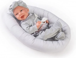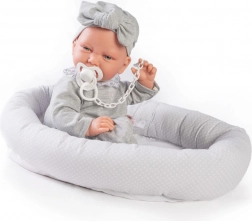 Cuibul textil moale oferă păpușii un loc călduros pentru odihnă sau expunere. Perfect pentru transport, depozitare și o prezentare stilată în camera copilului.