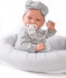 Carla de la Antonio Juan este o păpușă-bebeluș realistă, lucrată cu atenție, care le oferă copiilor o experiență autentică de îngrijire. Corpul textil moale este plăcut de îmbrățișat, iar capul și membrele din vinil moale arată și se simt natural. Datorită articulațiilor mobile, păpușa poate fi așezată cu ușurință în șezut fără sprijin și adaptată diferitelor jocuri de rol.