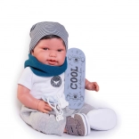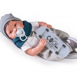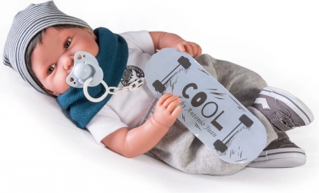 Păpușa realistă bebeluș Antonio Juan Pipo Hair încântă prin expresia delicată, trăsăturile atent lucrate și posibilitatea de poziționare naturală datorită articulațiilor la brațe și picioare. Combinația dintre corp textil moale și vinil înmuiat la nivelul capului și membrelor asigură o atingere foarte plăcută și un aspect autentic.