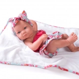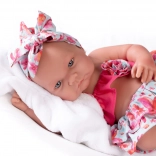 Păpușă bebeluș spaniolă, lucrată manual, cu dimensiunea de 42 cm, cu corp din vinil integral și detalii realiste, inclusiv sex anatomic corect. Realizată din vinil moale, plăcut la atingere, ceea ce permite îmbăierea (cu atenție la gene). Se livrează în ambalaj cadou și este ideală pentru imaginația copiilor și pentru jocul afectuos de-a părinții.