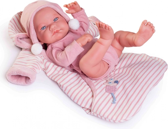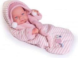 Această păpușă spaniolă lucrată manual reprezintă un nou-născut, cu redarea extrem de fidelă a cutelor specifice bebelușilor și a detaliilor anatomice. Întregul corp este din vinil moale, plăcut la atingere și rezistent la joaca de zi cu zi. Păpușa poate fi, de asemenea, băgată la baie – aveți însă grijă ca genele să nu se ude.