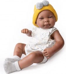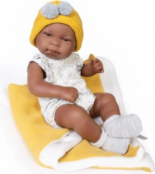 Descoperă farmecul îngrijirii unui bebeluș cu această păpușă realistă ANTONIO JUAN de 42 cm, realizată din vinil înmuiat, plăcut la atingere. Are un trup lucrat în detaliu, inclusiv cute de bebeluș și organe genitale, poate fi îmbăiată delicat și este îmbrăcată în bumbac organic. Cadoul ideal, în cutie de cadou, pentru copii de la 3 ani.