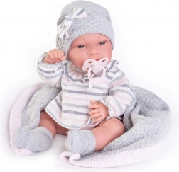 Această păpușă realistă reproduce aspectul unui bebeluș nou-născut – de la faldurile fine până la trăsăturile lucrate în detaliu. Construcția integrală din vinil înmuiat este plăcută la atingere, ușor de întreținut și le permite copiilor să dezvolte prin joc empatia și abilitățile de îngrijire.