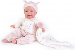 Trăsături realiste, o căciuliță drăguță și o păturică/scutec moale accentuează aspectul autentic al păpușii și o transformă într-un cadou minunat.