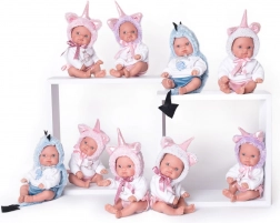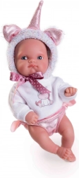 Această păpușă bebeluș realistă, în adorabila ținută de unicorn, este realizată din vinil special înmuiat, foarte plăcut la atingere și rezistent pentru joaca de zi cu zi. Reprezentarea detaliată a cutelor și proporțiilor de bebeluș, inclusiv organele genitale, conferă jocului de-a părinții naturalețe. Construcția integrală din vinil permite să fie scăldată fără griji, extinzând posibilitățile de joc.