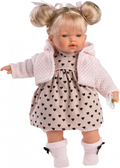 Păpușa Llorens Roberta, cu înălțimea de 33 cm, este un partener ideal de joacă și pentru dezvoltarea imaginației copiilor. După îndepărtarea suzetei magnetice, spune „mama”, „papa” și emite un sunet realist de plâns, care poate fi ușor liniștit prin reaplicarea suzetei. Corpul textil moale este perfect pentru îmbrățișări, în timp ce capul și membrele din vinil moale oferă un aspect natural și o senzație plăcută la atingere.