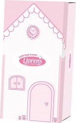 Păpușa este așezată într-o cutie decorativă Llorens – rezistentă, frumos realizată grafic și potrivită pentru a fi oferită cadou sau pentru depozitare.