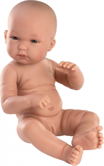 Această păpușă realistă bebeluș Llorens New Born băiețel este realizată din vinil de calitate și redă fidel corpul de bebeluș cu toate detaliile drăgălașe. Datorită corpului integral din vinil, păpușa este potrivită și pentru baie (cu excepția înmuiării genelor). Mâinile și picioarele sunt atașate cu articulații, astfel încât păpușa este poziționabilă și poate sta așezată.