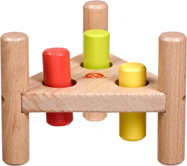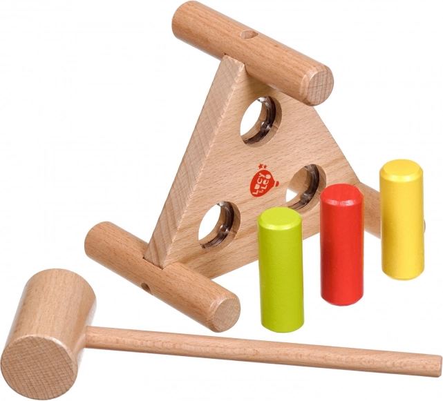 Acest bătător din lemn de calitate, cu bază triunghiulară, este o alegere ideală pentru copiii care iubesc jocul activ și învățarea. Datorită construcției simple și sigure, copiii își exersează motricitatea fină, spiritul de observație și percepția spațială. Țărușii colorați (roșu, galben, verde) îi atrag la explorare și susțin învățarea culorilor.