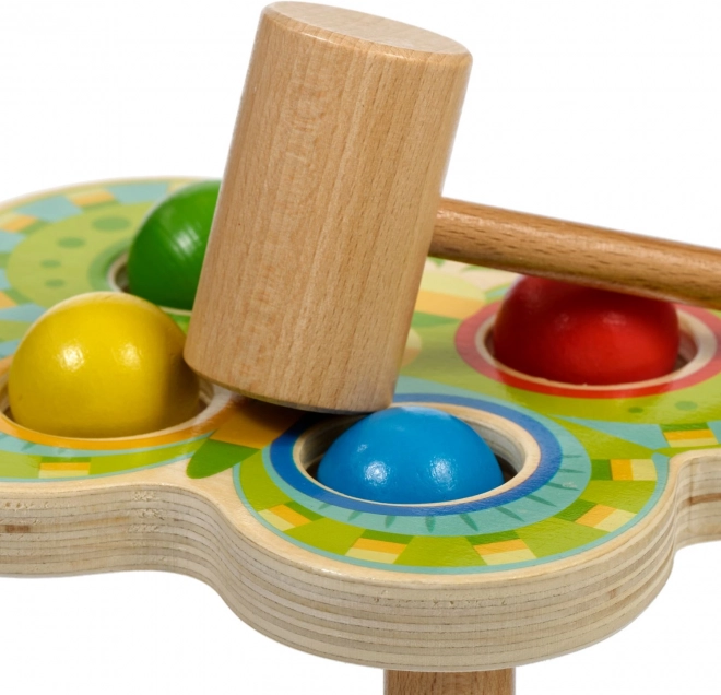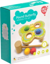Bătător din lemn distractiv în formă de fluture, cu patru bile colorate, care dezvoltă motricitatea fină, coordonarea mână–ochi și concentrarea. Copiii bat bilele în orificiile de culoare corespunzătoare cu un ciocănel – o jucărie sigură, durabilă și atrăgătoare vizual, din lemn natural.