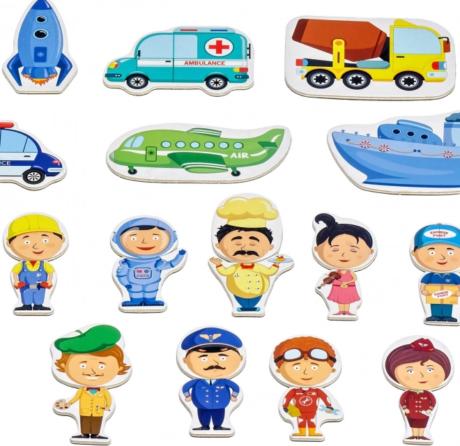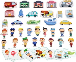 Setul bogat de piese magnetice și carduri față-verso îi motivează pe copii atât la potrivirea corectă, cât și la creație liberă în timp ce descoperă diferite profesii.
