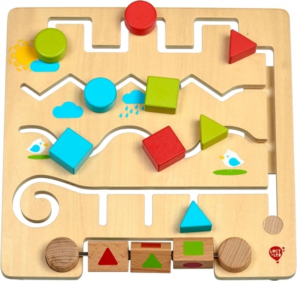 Labirintul din lemn cu forme geometrice LUCY & LEO este o jucărie distractivă și educativă care îi ajută pe copii să învețe formele și culorile în mod natural. Tabla de joc netedă, cu trasee sinuase, ghidează piesele colorate astfel încât să corespundă formelor de pe blocurile rotative sau modelelor de pe carduri. Datorită lemnului robust și execuției sigure, jucăria este potrivită pentru joaca zilnică.