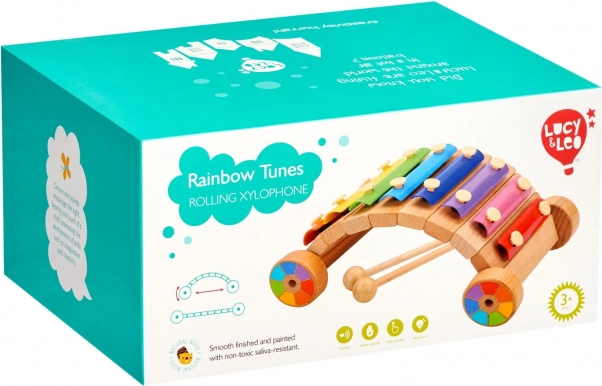 Xilofonul curcubeu LUCY & LEO îmbină un instrument muzical cu o jucărie pe roți. Lamelele metalice în culorile curcubeului invită la primele melodii, în timp ce baza solidă din lemn cu roți susține jocul activ. Copiii învață în mod natural să diferențieze tonurile, să perceapă ritmul și să-și dezvolte coordonarea mână–ochi.