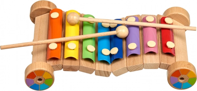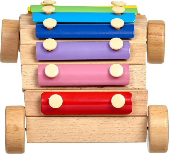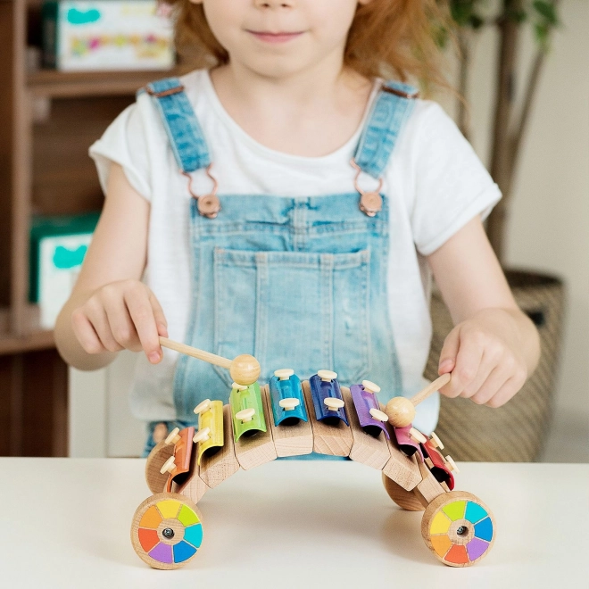 Șasiul din lemn cu roți permite să tragi sau să împingi xilofonul, făcând învățarea muzicii și mai distractivă.