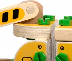 Setul de construcție susține dezvoltarea motricității fine prin asamblarea pieselor cu ajutorul șuruburilor și șurubelniței.