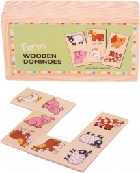 Domino colorat din lemn cu tematică de fermă de la Bigjigs Toys, ideal pentru mâinile mici ale copiilor. Oferă distracție atemporală, dezvoltă dexteritatea, compararea și concentrarea. Toate piesele pot fi depozitate comod într-o cutie din lemn cu capac glisant. Setul include 28 de piese realizate din lemn de calitate, obținut în mod responsabil, care respectă standardele europene de siguranță.