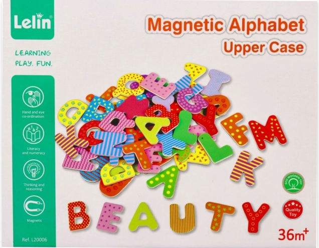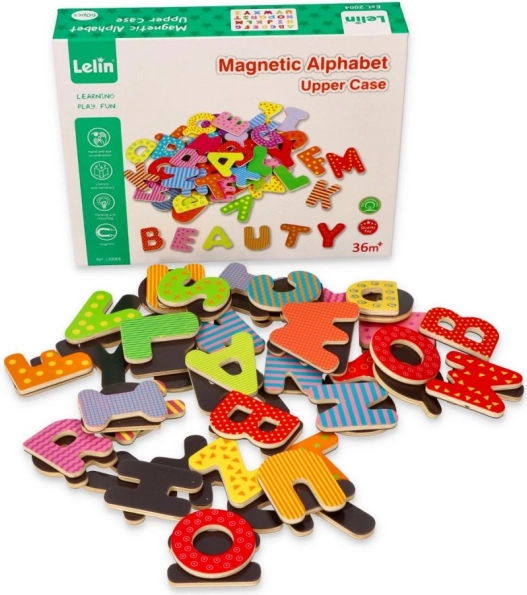 Acest set de litere magnetice din lemn sprijină învățarea naturală prin joc. Datorită spatelui magnetic, aderă pe frigider, tablă magnetică sau suprafețe metalice, astfel încât copiii pot învăța ușor alfabetul, formarea silabelor și a primelor cuvinte.
