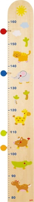 Urmărirea creșterii copiilor dumneavoastră devine o distracție cu metru din lemn Prieteni din junglă. Acest metru poate fi ușor agățat pe perete și oferă măsurători precise de la 78 la 160 cm.