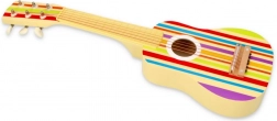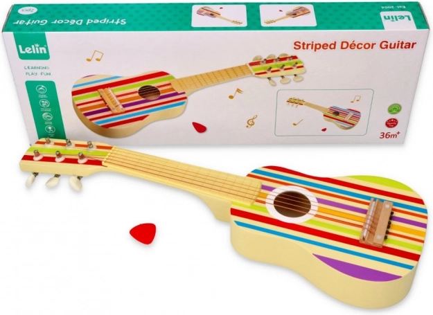 Chitara impresionează prin modelul său în dungi multicolore, care va fascina orice copil.