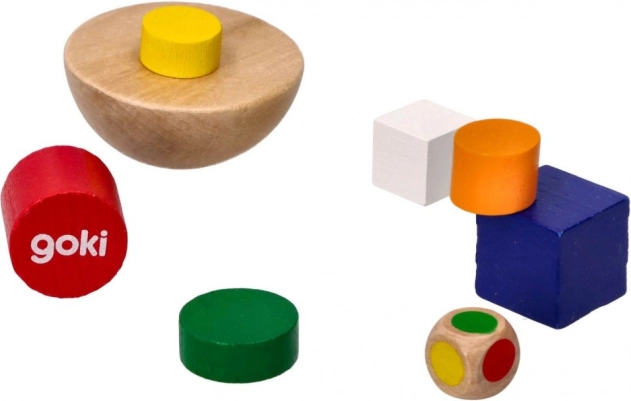 Componente din lemn de calitate, în culori vii, și un zar care stabilește ordinea pieselor asigură varietate și un joc mereu nou.