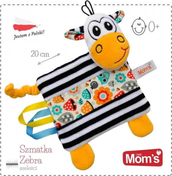 Această zebră din pluș, fină la atingere și cu etichete, este un companion perfect pentru pătuț, cărucior și călătorii. Combină materialul plăcut la atingere cu detalii practice pentru explorare senzorială și liniștirea copilului. Fabricată în Polonia, cu accent pe calitate și siguranță, având declarație de conformitate CE valabilă.