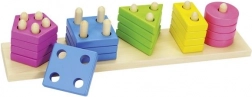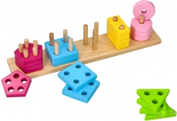 Un puzzle din lemn distractiv combină sortarea culorilor și formelor cu înșirarea pe pini cu un număr diferit de orificii. Dezvoltă motricitatea fină, coordonarea ochi–mână și gândirea logică, fiind realizat din lemn masiv pentru o joacă sigură și durabilă.