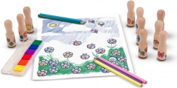 Acest set deluxe de ștampile oferă copiilor tot ce au nevoie pentru a crea desene vesele, felicitări și proiecte școlare. Datorită ștampilelor din lemn cu motive îndrăgite și cernelurilor intense, lavabile, micii artiști pot crea combinații și povești variate.