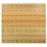 - cutie din lemn cu capac, 8 rigle mari (fiecare cu 10 imagini), 80 de plăcuțe mici cu imagini individuale