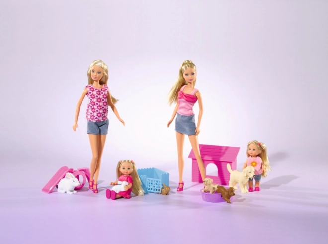 Descoperiți o lume plină de distracție cu păpușile îndrăgite Steffi și Evi! Acest set oferă două variante, fiecare cu animăluțe drăgălașe diferite, pe care copiii dvs. le vor îndrăgi pe loc.