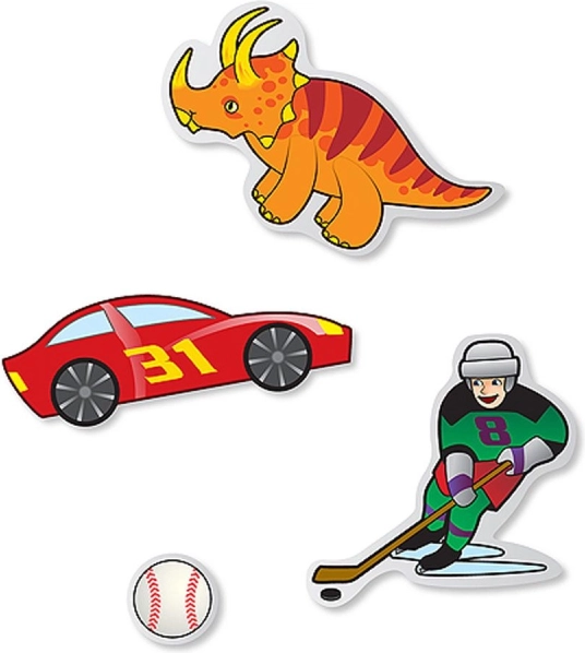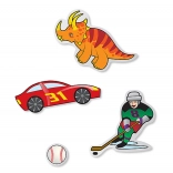 - Gamă largă de motive: dinozauri, mașini, sporturi, spațiu și altele