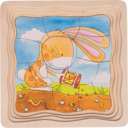 Puzzle-ul stratificat, cu contururi clare, îi ghidează pe copii să așeze precis piesele, antrenează coordonarea mână–ochi și rezolvarea de probleme.