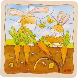 Descoperă cum crește morcovul cu un frumos puzzle stratificat din lemn de la GOKI. Patru imagini succesive cu un număr diferit de piese îi învață pe copii baze de științe naturale, dezvoltă motricitatea fină, gândirea logică și abilitățile de coordonare. Datorită ramei solide din lemn, se asamblează ușor și este ideal pentru copii de la 3 ani.