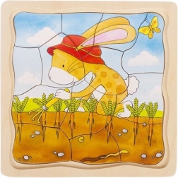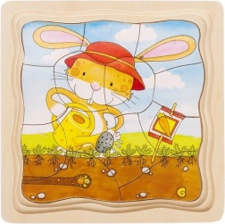 Acest puzzle din lemn cu mai multe straturi prezintă patru etape ale dezvoltării morcovului – de la sămânță până la recoltă. Fiecare strat are o imagine diferită și un număr distinct de piese, crescând natural nivelul de dificultate și menținând atenția copiilor. Placa solidă din lemn cu ramă asigură o asamblare confortabilă și stabilă.