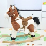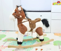 Acest căluț balansoar fermecător este realizat din pluș moale și de calitate, asigurând o atingere plăcută. Un avantaj excelent îl reprezintă șinele balansoar din lemn și mânerele solide din lemn, care oferă stabilitate și siguranță în timpul jocului. Căluțul este echipat cu șa cu scărițe și zăbală, ceea ce sporește autenticitatea călăriei.
