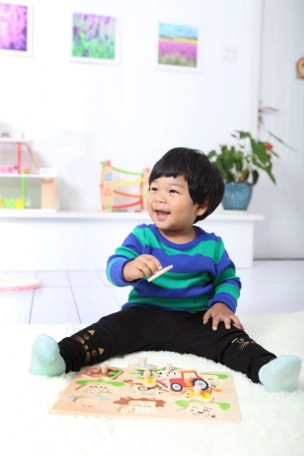 Placa puzzle din lemn Jungle oferă o distracție grozavă și învățare pentru cei mici. Această jucărie educativă încurajează dezvoltarea motricității fine și recunoașterea diferitelor animale.