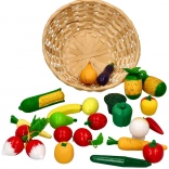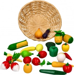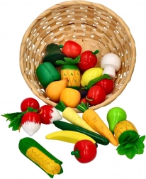 Coșul cu fructe și legume proaspete este un set ideal pentru jocul de-a magazinul. Conține 21 de piese de fructe și legume din lemn, ceea ce le asigură durabilitatea și posibilitatea de a fi folosite pe termen lung de mulți copii.