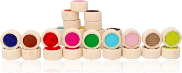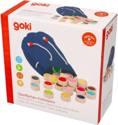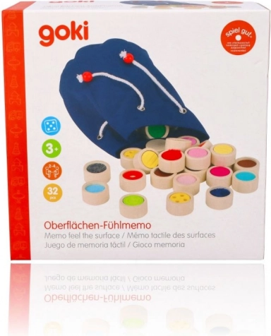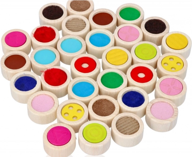 Memo tactil din lemn este ideal pentru stimularea percepțiilor tactile și senzoriale. Piesele de joc în formă de cilindri din lemn masiv au un diametru de 4 cm și 16 suprafețe diferite. Jocul poate fi jucat cu ochii închiși ca o provocare pentru a găsi aceeași suprafață sau ca un joc clasic memo așezând piesele cu fața colorată în jos.